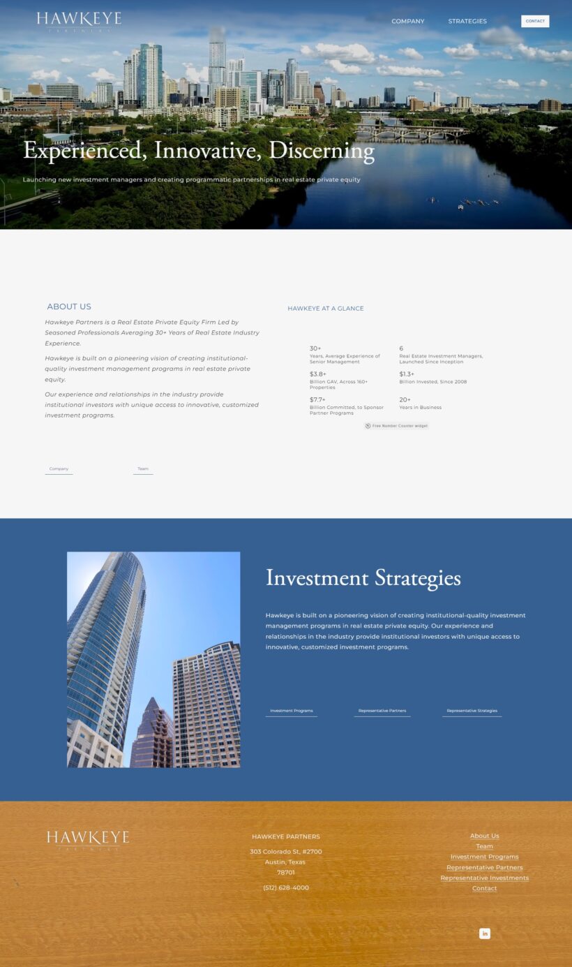 The goal for the redesign was to create a modern and streamlined digital experience that communicates Hawkeye’s expertise and provides clear access to information about current and future investment programs. The new design needed to direct users toward the next step, reaching out directly to Hawkeye for more information.
