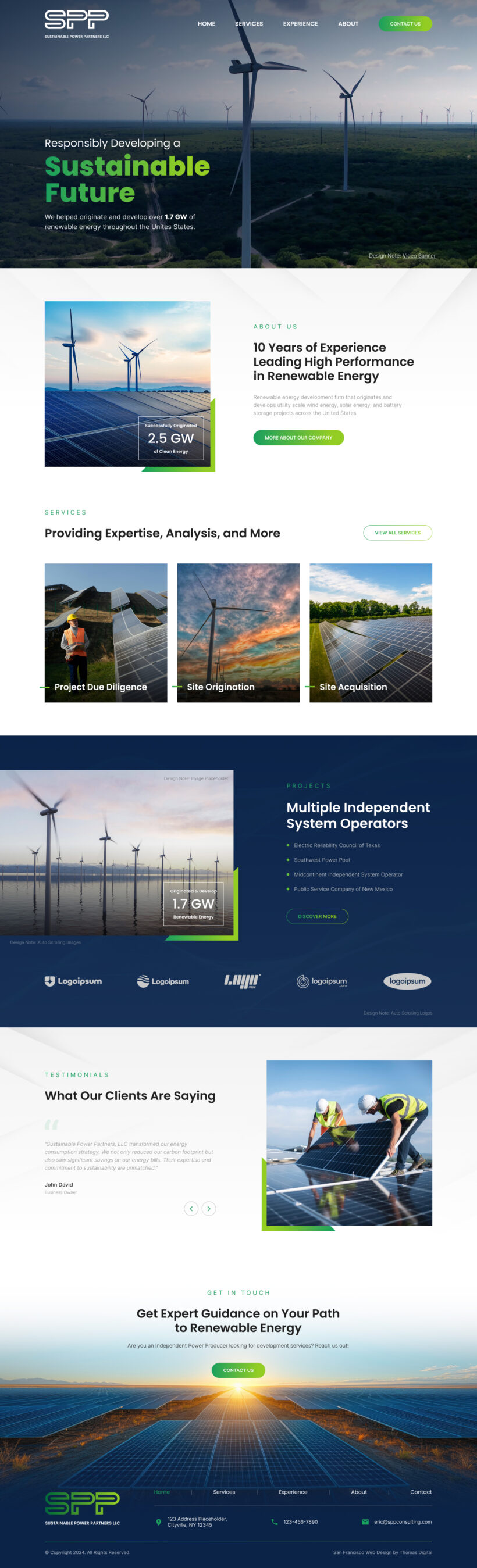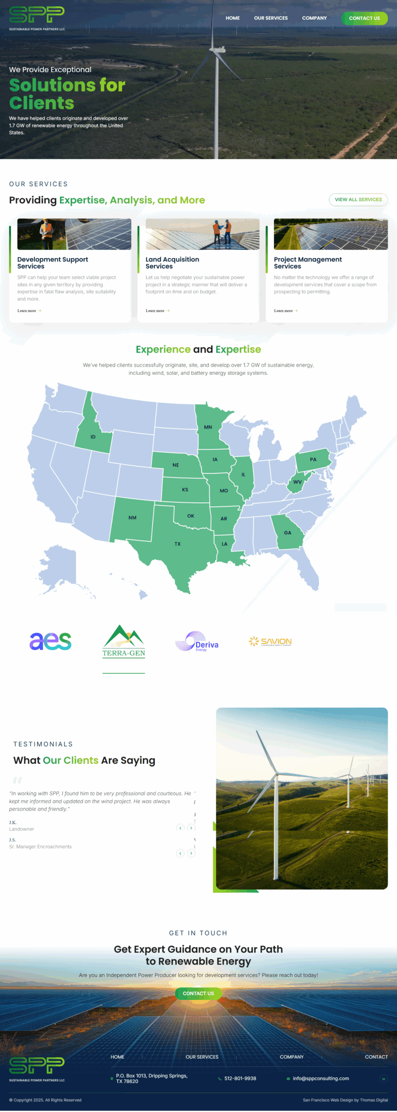 Built on a custom WordPress platform with a fully mobile-responsive design, the new website highlights SPP’s experience, geographic reach, and client success stories. Clear calls to action and intuitive navigation provide a seamless path for prospective clients to engage, reinforcing SPP’s position as a trusted partner in the renewable energy space.